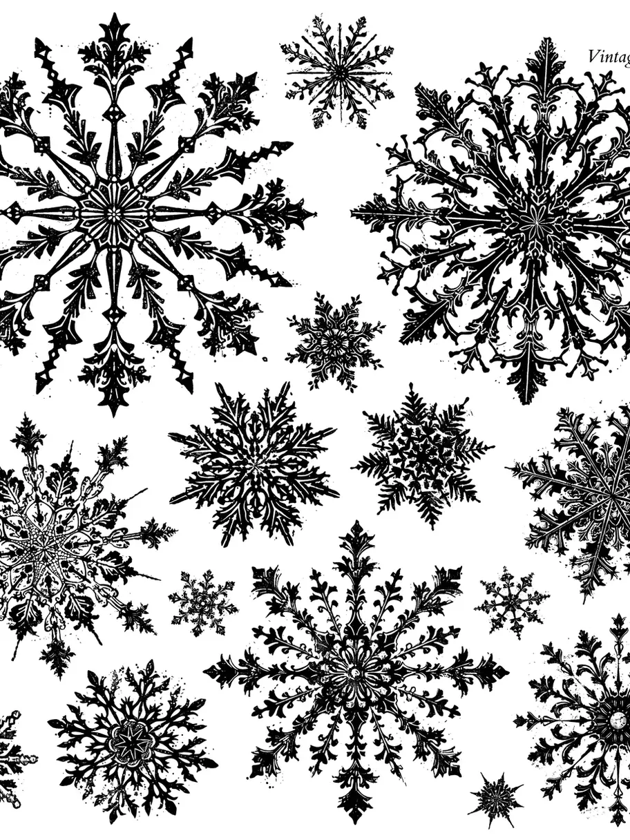 Designed to add snowy touches to your holiday projects, Vintage Snowflakes transcends decor styles and aesthetics. We took great care in designing the line weight, distinctive style, and range of sizes for tons of variation and mixing.