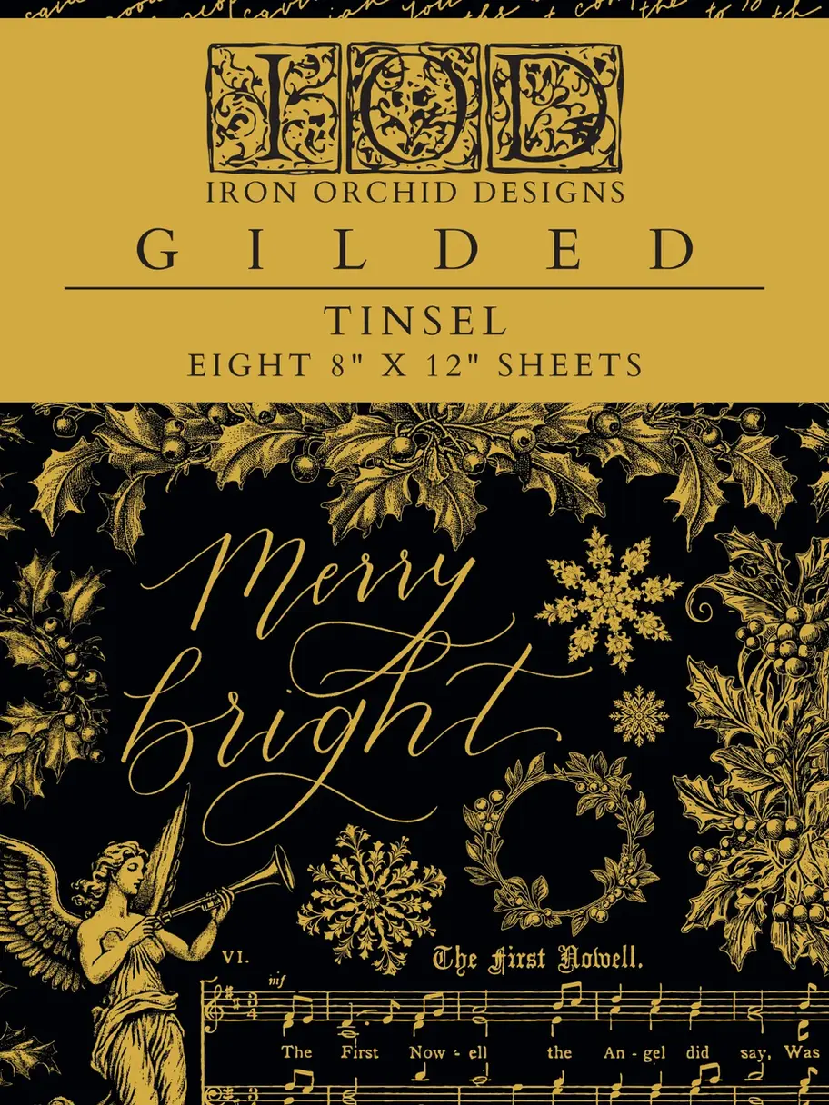 Introducing Tinsel, a gilded Christmas transfer designed to capture the enchantment of the holiday season with its intricate details and beautiful typography. Start your handmade holiday crafting with a gilded transfer that allows you to add a little glitz to gift tags, wall art, and small decor in minutes. Think about how many gifts you could make with this set alone (hint: more than we can count đ)!
